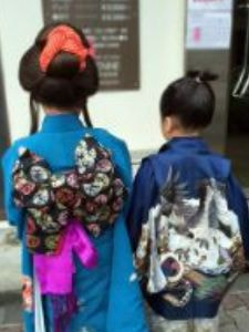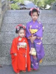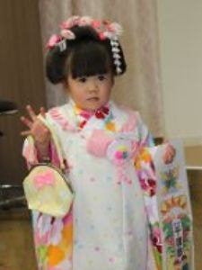 三歳の男女、五歳の男子、七歳の女子が11月15日にお宮参りをし、子供の成長を祝う行事です。