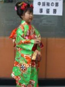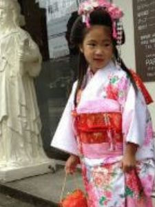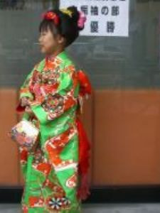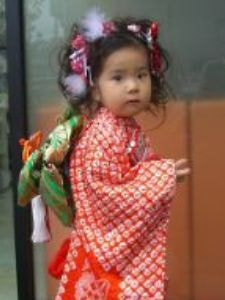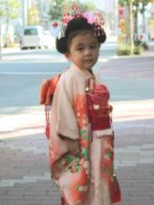 三歳の男女、五歳の男子、七歳の女子が11月15日にお宮参りをし、子供の成長を祝う行事です。